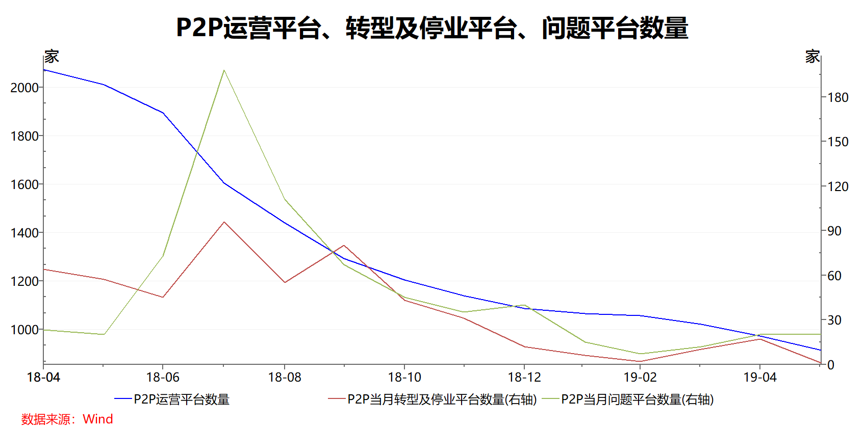 值得注意的是,2019年5月新增转型及停业平台数仅为1家,这也是近4年中该指标的最低值。2019年以来,新增转型及停业平台的总数为36家,而2018年全年,该指标的月平均数就达到了55家。